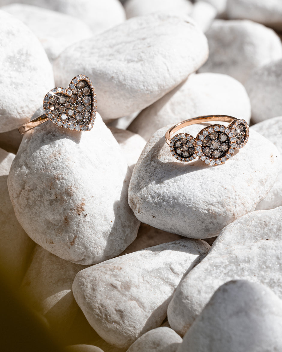 Anello cuore in oro rosa 18 Kt. con diamanti brown ct. 0,31 e diamanti bianchi ct. 0,37 VS/F