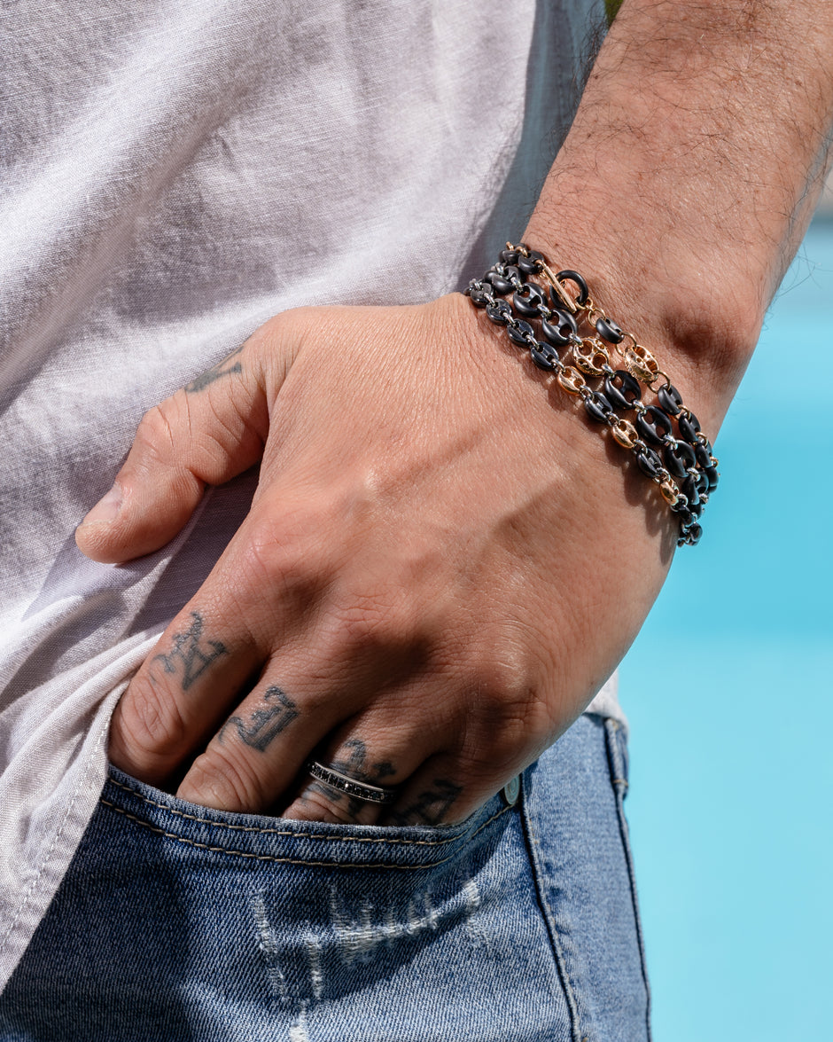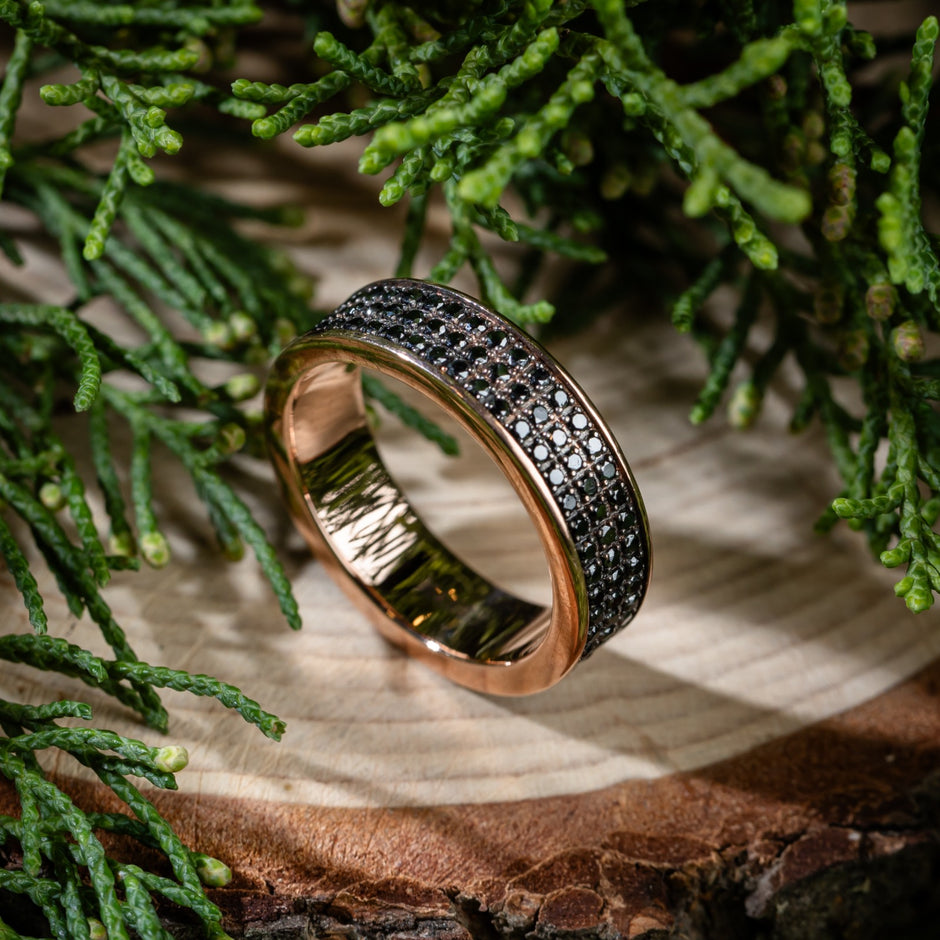 Anello in oro rosa Kt. 18 e diamanti neri, realizzabile in tutte le misure e diverse carature
