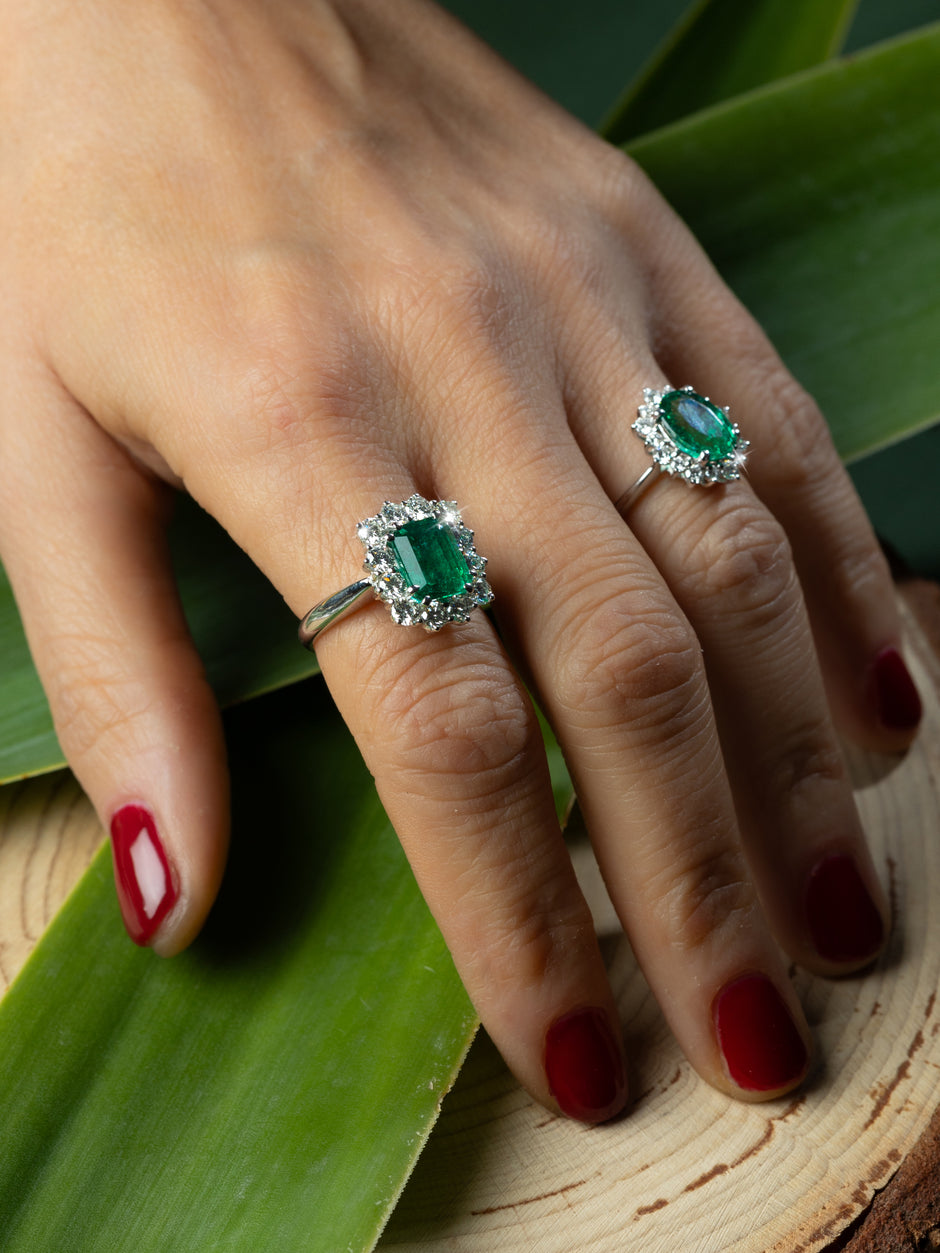 Anelli in oro bianco 18kt diamanti e smeraldo